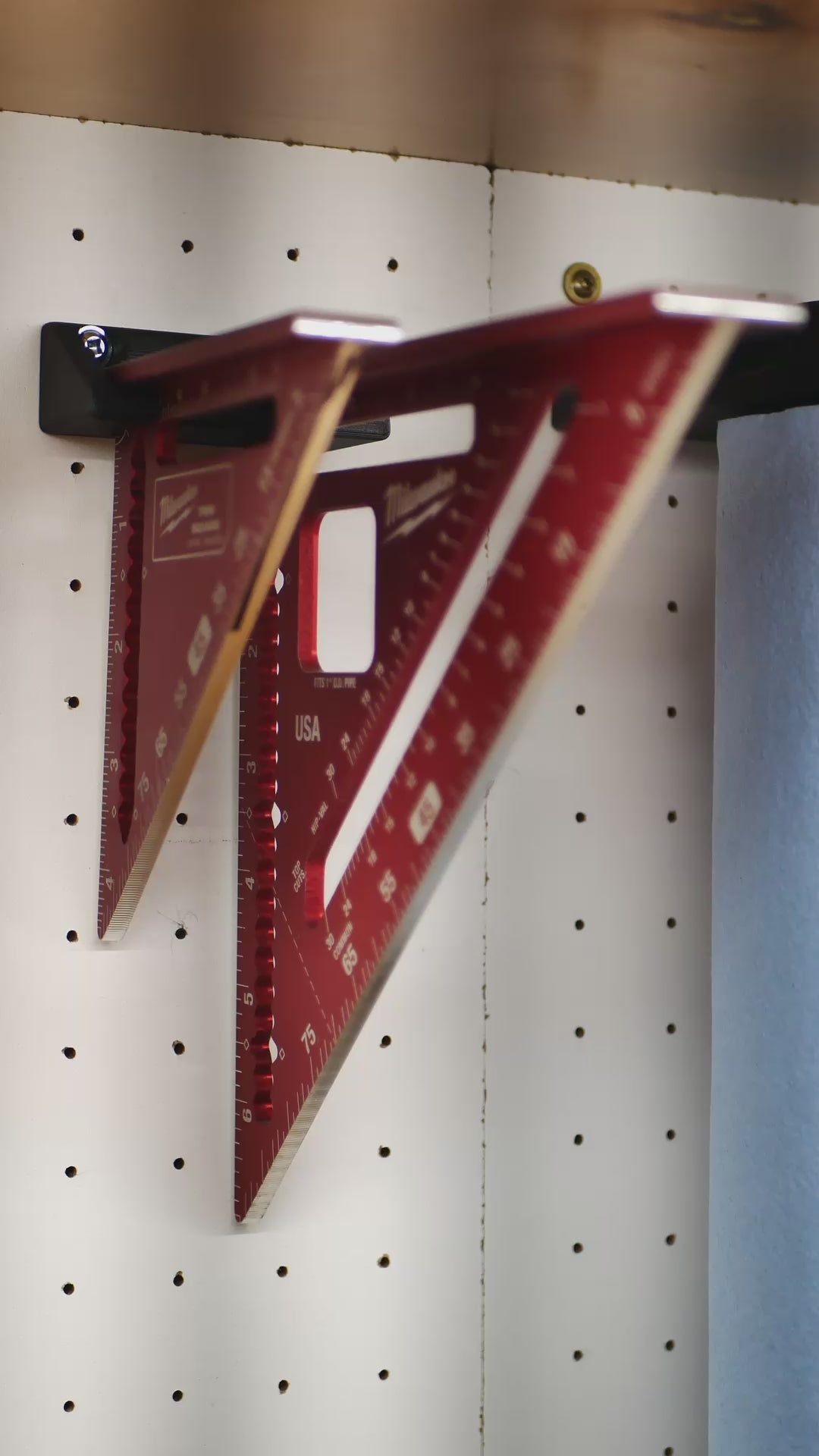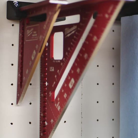 Wall mount to hold the 4" and 7" Milwaukee squares. This holder makes your squares easily accessible to grab and stow from the wall in front of you.